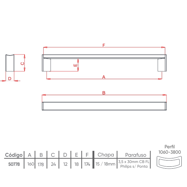 Formado por um perfil em alumínio minimalista e ponteiras delicadas sua estética está voltada à funcionalidade sendo coadjuvante no móvel. Além disso, destaca-se pela sua pega extremamente ergonômica, o que proporciona um manuseio confortável ao abrir portas e gavetas.